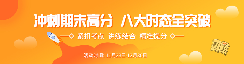 2)登录后选择“活动”—“冲刺期末高分,八大时态全突破”—“我要参加”,观看讲解视频;